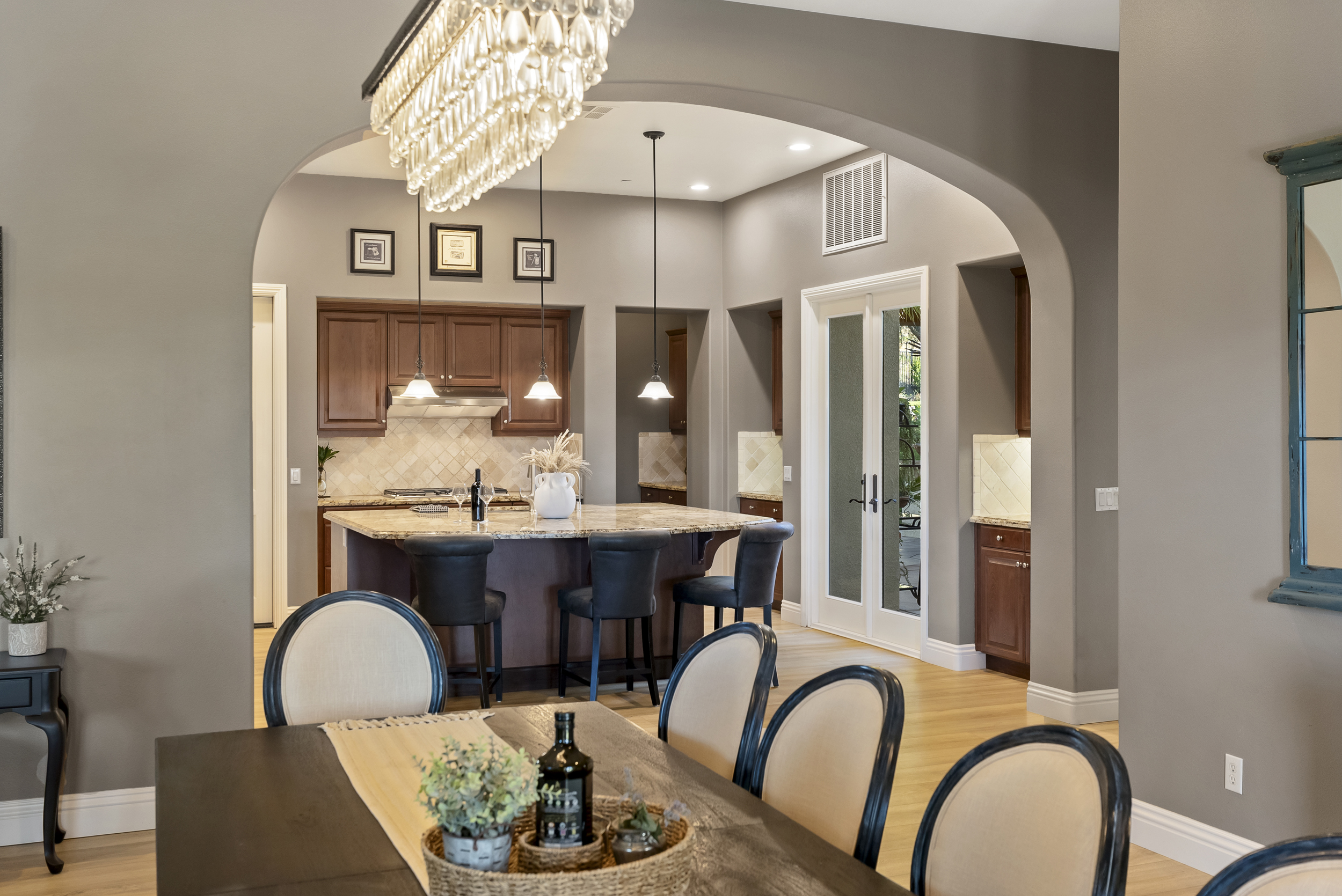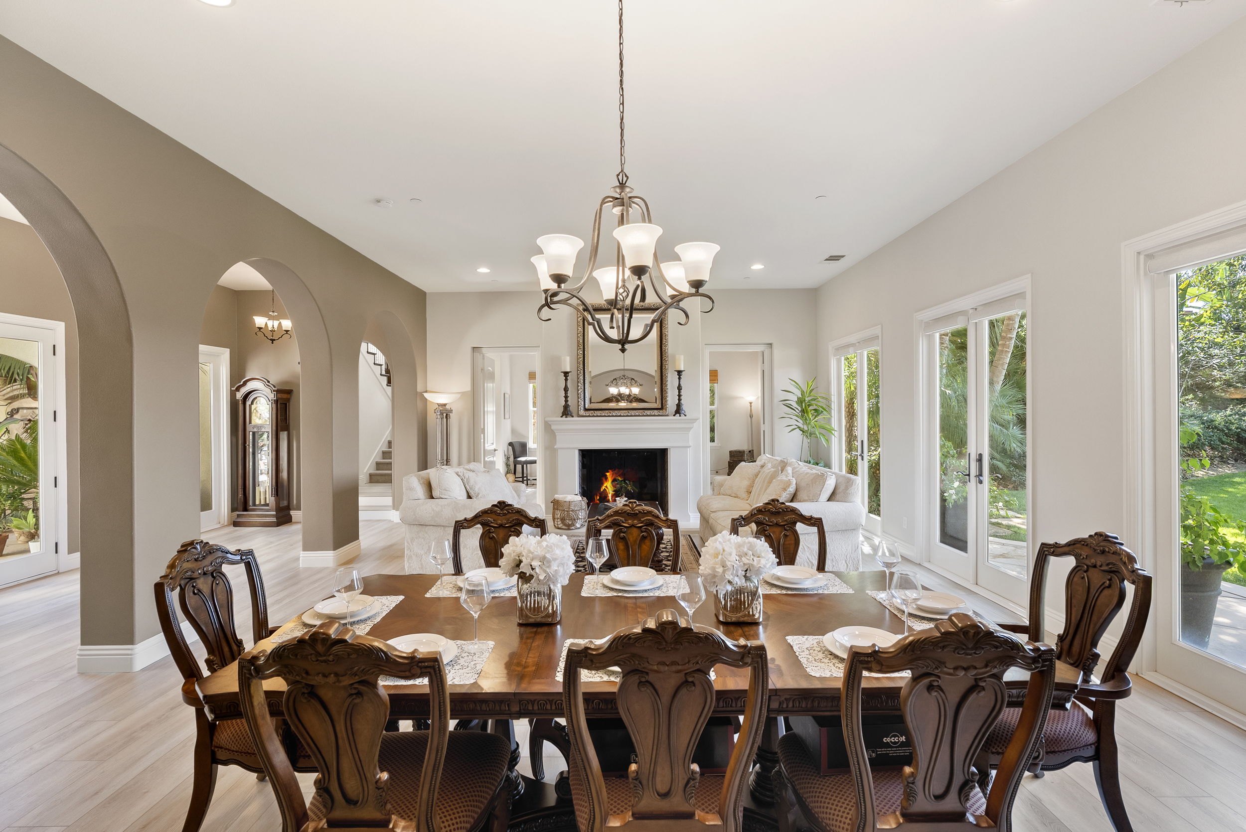 Inside, approximately 4,850 sqft offers scale and versatility, with formal living and dining rooms, a private office, and a spacious family room with breakfast area that connects to the outdoors through multiple sets of French doors.