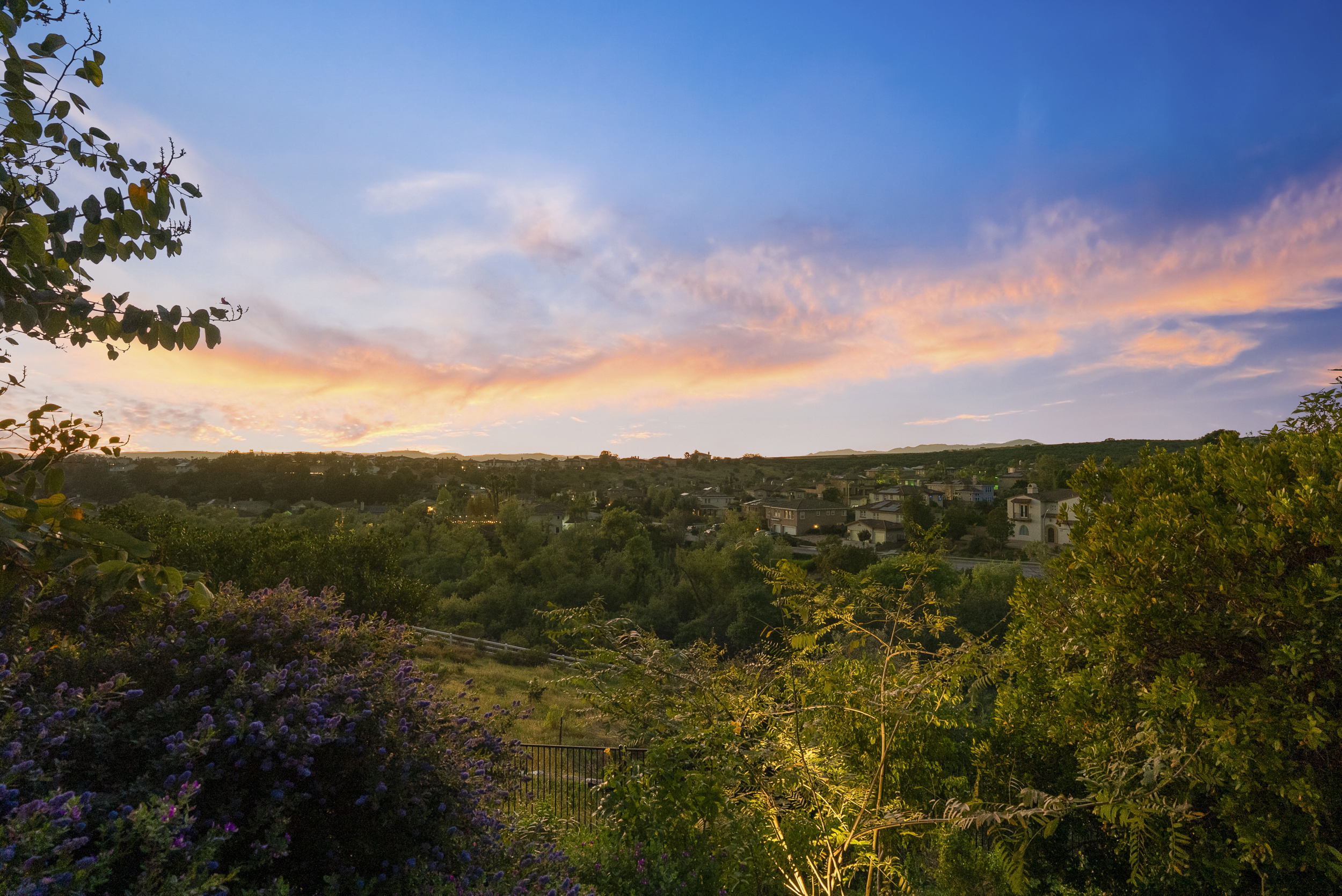 Set on just over an acre in a private enclave of estate homes, this property offers a rare combination of space, privacy, and sweeping sunset views across rolling hills.