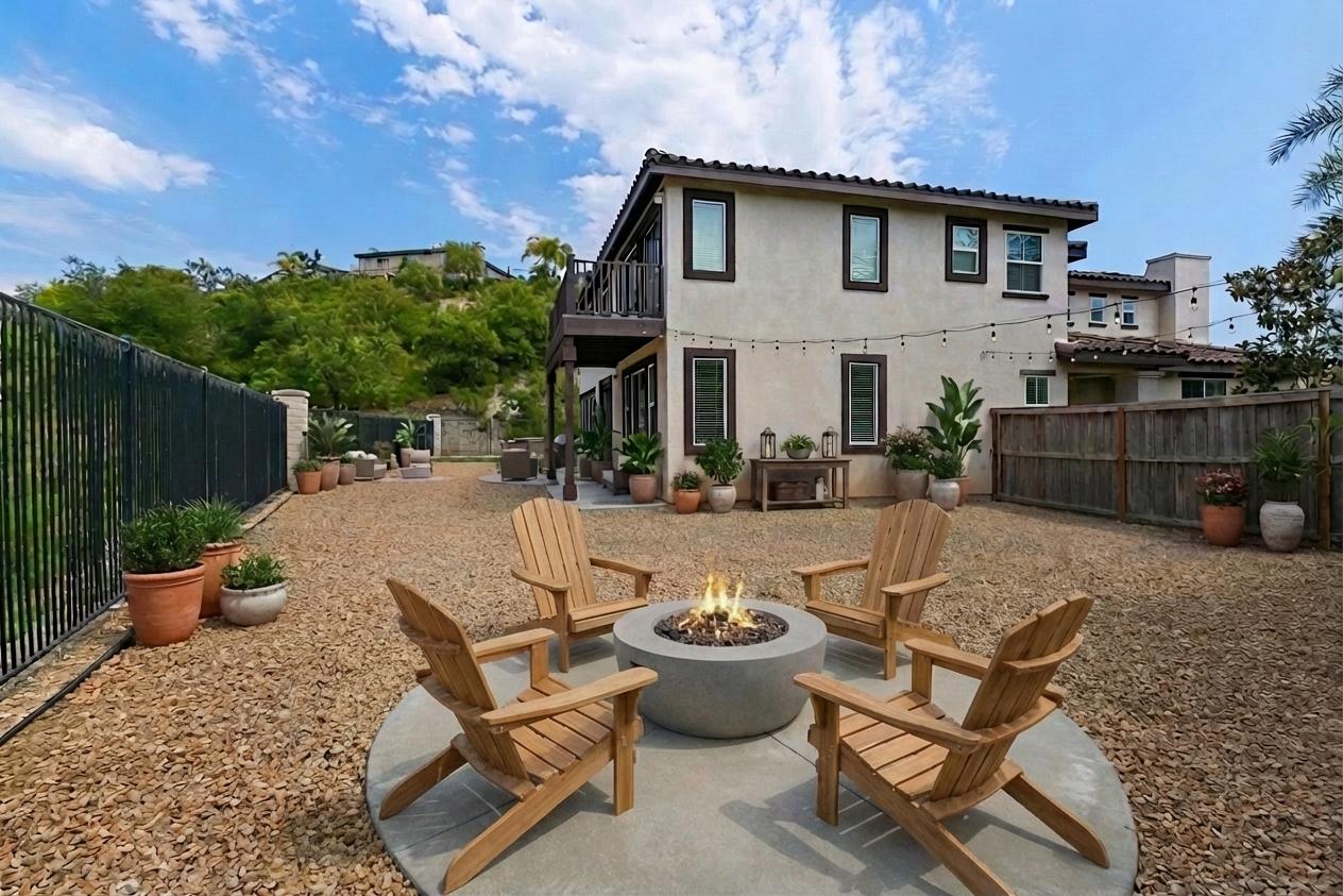 Set on a premium, pool-sized lot, the private backyard is an entertainer's dream, featuring a concrete patio and a separate round patio area -- perfect for a firepit gathering.
