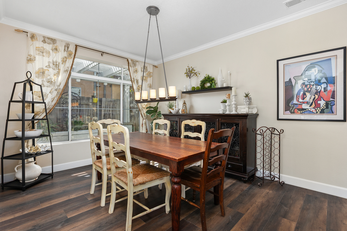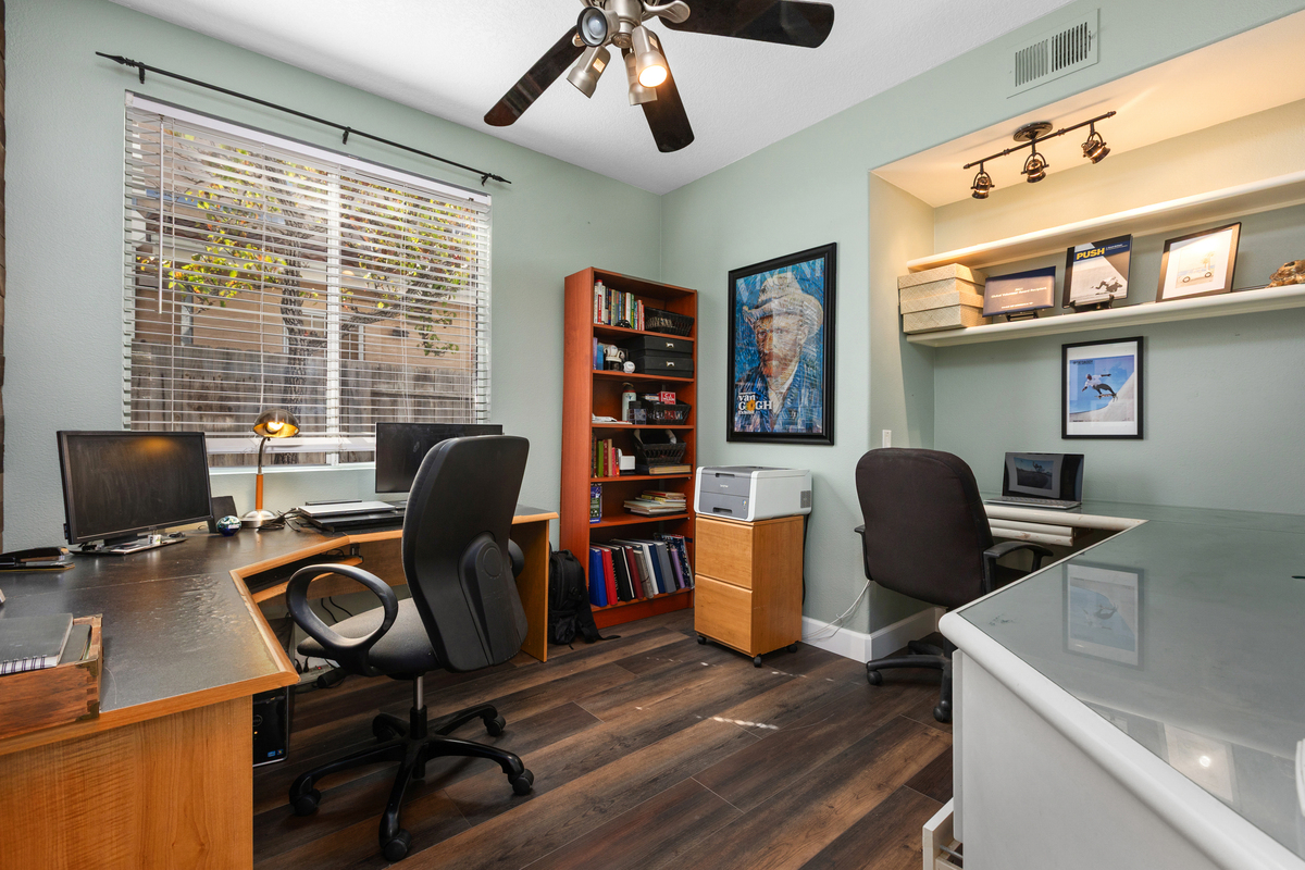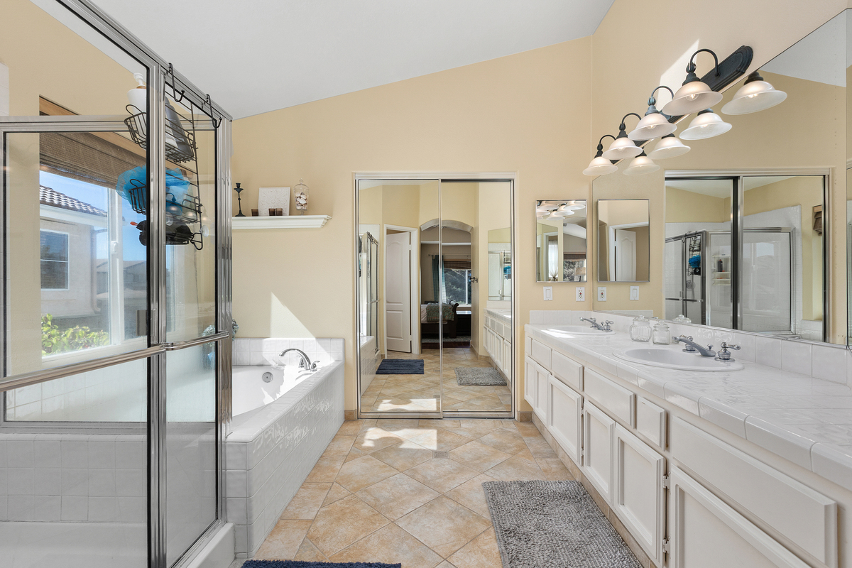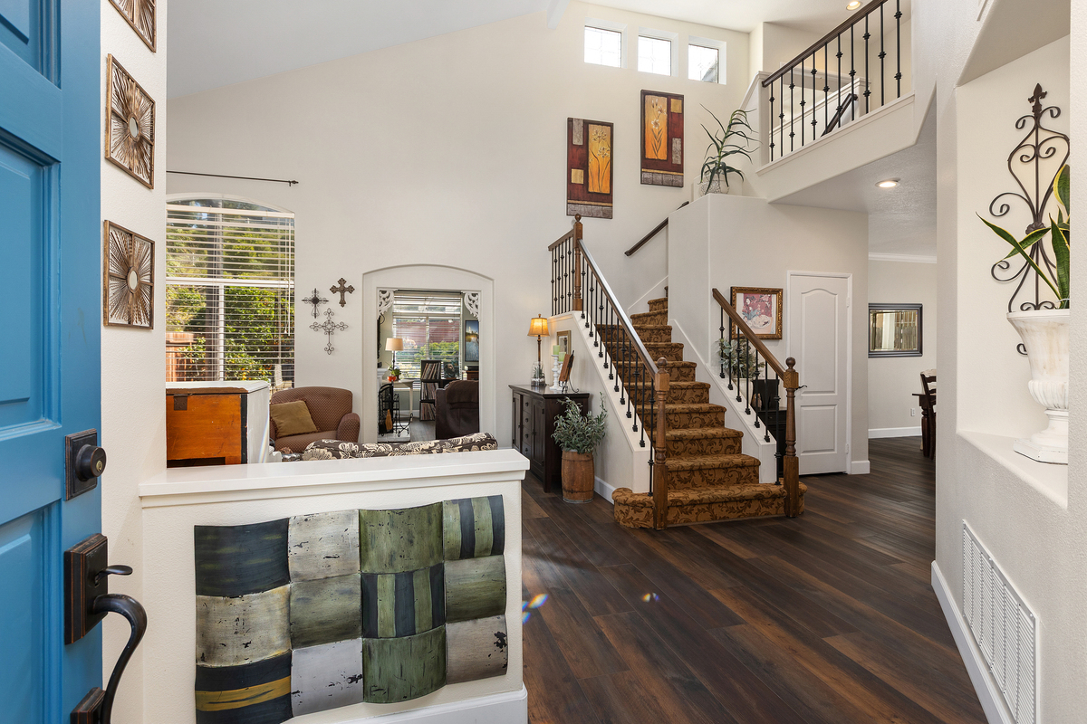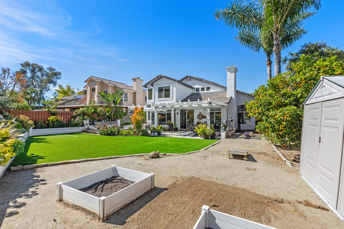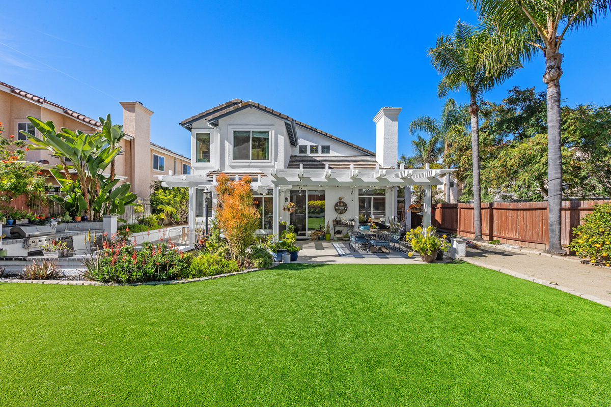 Located on a quiet cul-de-sac in the Rancho Del Oro community, this 4-bedroom, 3-bath home offers approximately 2,300 sq ft of well-designed living space with one of the larger and more private backyards in the neighborhood. The expansive yard features a spacious lawn, mature landscaping, multiple seating areas, a pergola-covered patio, built-in BBQ, and fire pit—ideal for entertaining, play, or simply enjoying the privacy with no immediate rear neighbors. Inside, the home offers an open and functional layout with vaulted ceilings and abundant natural light. The floor plan includes a bedroom and full bathroom on the main level, providing flexibility for guests or multi-generational living. The updated kitchen features white cabinetry, quartz countertops, stainless steel appliances, and a center island, opening to the family room and backyard for seamless indoor-outdoor flow. Upstairs includes three additional bedrooms, including a spacious primary suite with dual sinks, soaking tub, separate shower, and walk-in closet. Additional highlights include a 3-car garage and a prime location with a community play area directly across the cul-de-sac, plus close proximity to parks, schools, shopping, and coastal access. A well-maintained Rancho Del Oro home offering space, privacy, and a highly desirable setting.